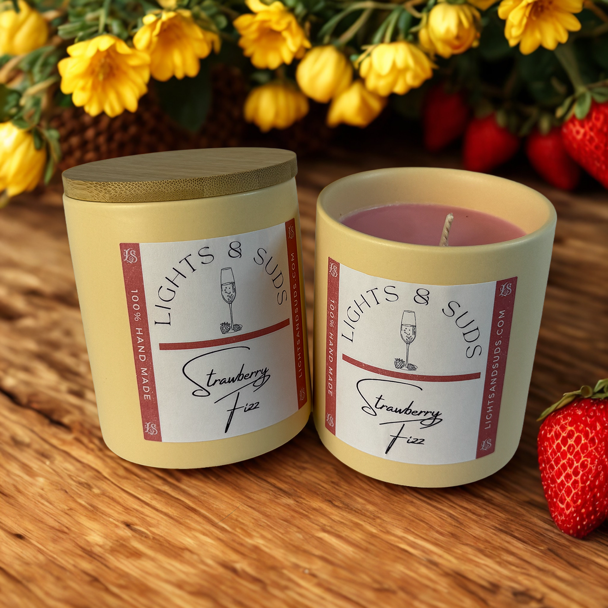 Hand-poured in small batches with natural soy wax and fine fragrance oils, Strawberry Fizz brings a touch of celebration to every day.